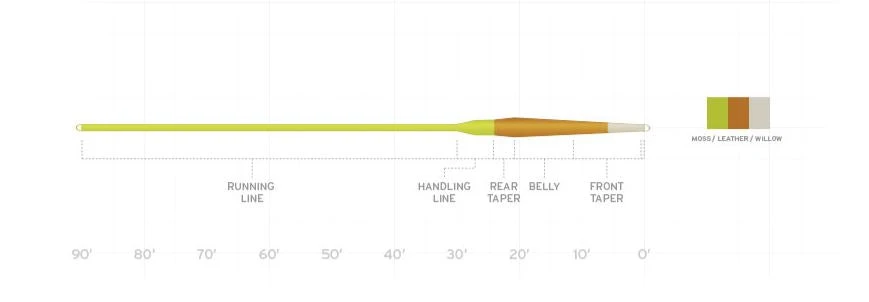 The Creek Trout Taper is designed for casting in small creeks where your average weight forward lines doesn’t make the cut. The rear loaded short-bellied fly line with an extended handling section. That means more mass is distributed to the front of the line, which assists in turning over weighted flies and performing roll casts.